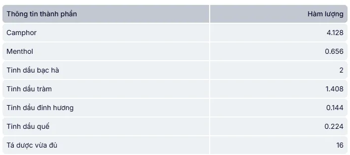 Kampfer, Menthol, Pfefferminzöl, Kajeputöl, Nelkenöl, Zimtöl, Hilfsstoffe q.s.