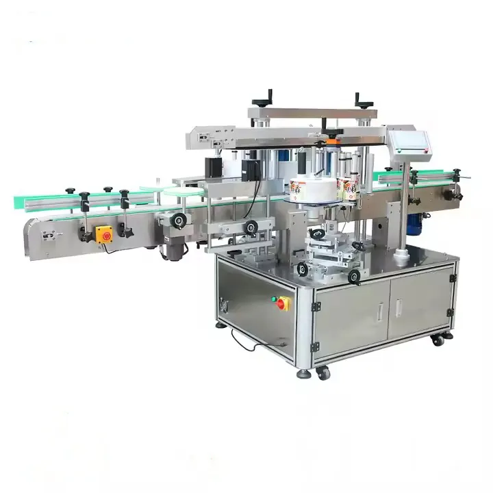 Automatische Zwei-Seiten-Etikettiermaschine zum Aufkleben von Etiketten auf flache Flaschen mit hoher Präzision. Die Produktetiketten sind flach und schön, ohne Verzerrungen, Abplatzungen oder Falten. Die Maschine kann unabhängig oder in Kombination mit Abfüll-, Verschluss- und Verpackungsmaschinen betrieben werden, um eine geschlossene Abfülllinie mit hoher Qualität und Produktivität für alle Produkte des Kunden zu schaffen.