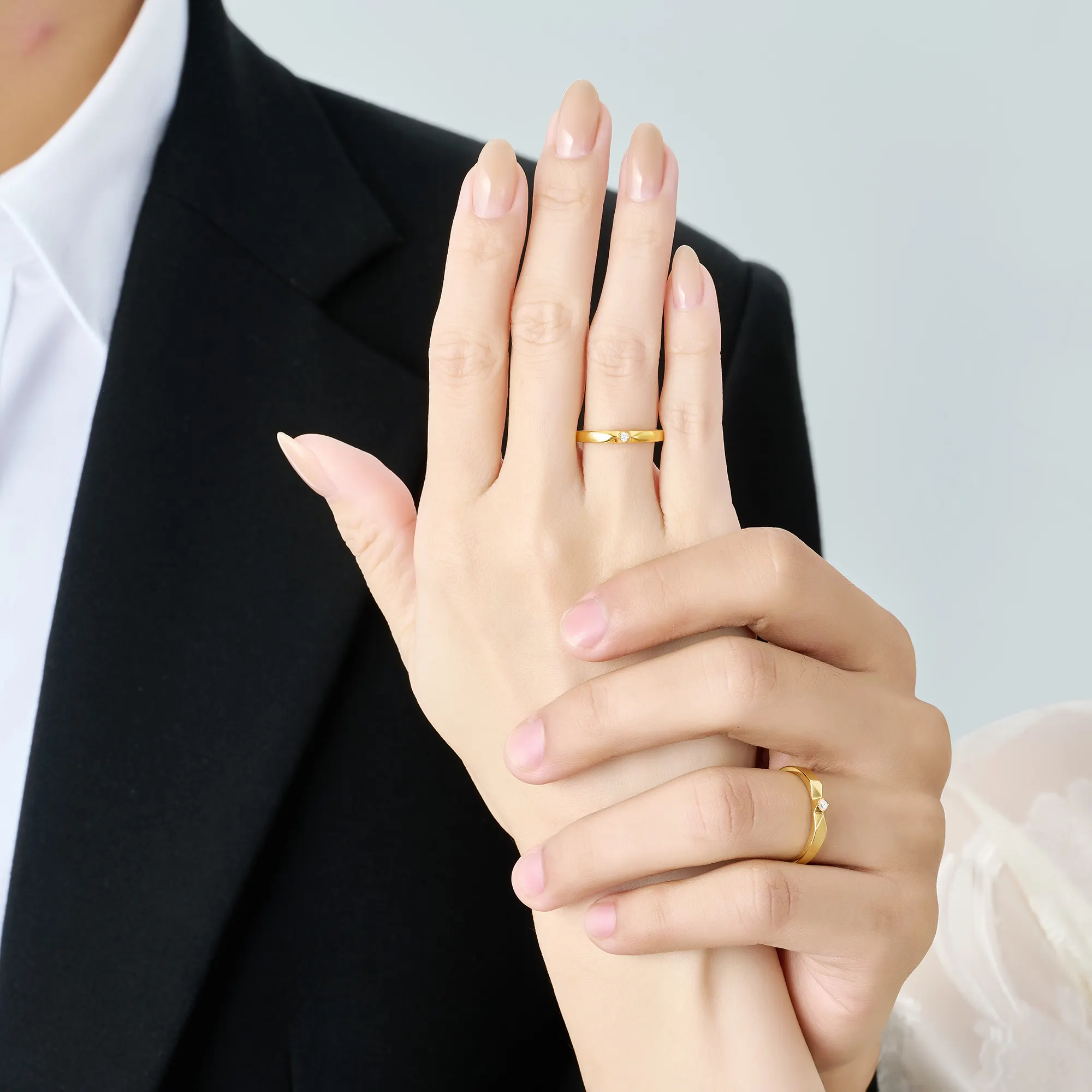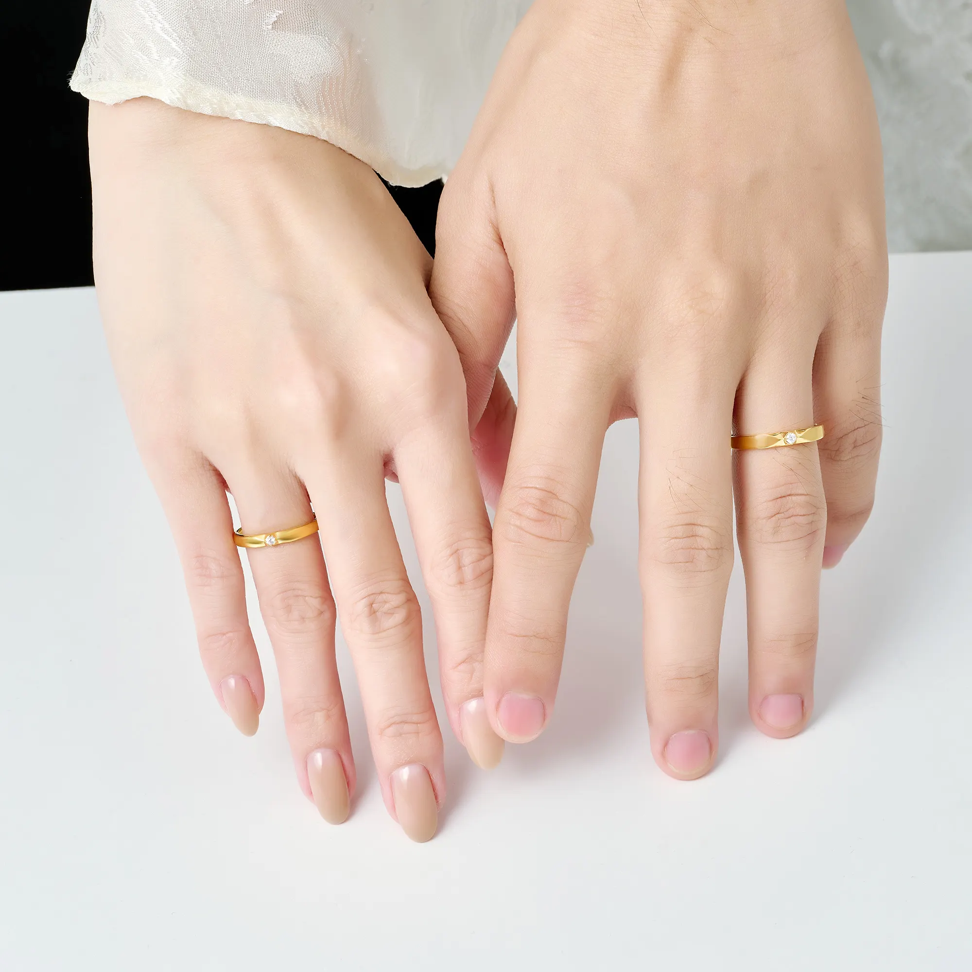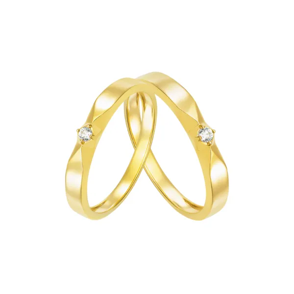 PNJ 14K Gold Wedding Ring Pair with ECZ Stones