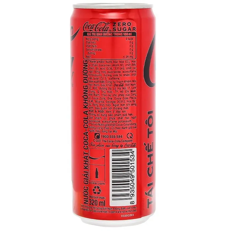Coca-Cola Zero 320ml Sugar-Free Soft Drink offers a delicious taste, quenching thirst on hot days while providing energy and abundant minerals. Because it's sugar-free, it's perfect for dieters.