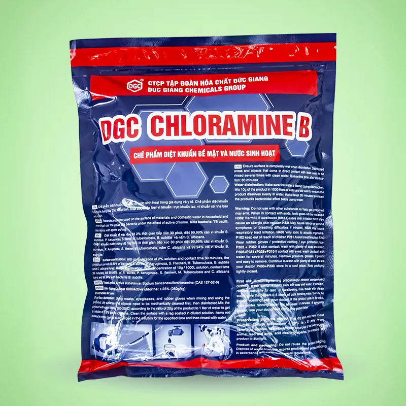 🧪 DGC – Chloramine B is an effective disinfectant and sterilizer, produced by Duc Giang Chemical Group. With the main active ingredient Sodium Benzenesulfochloramine, Chloramine B can quickly kill bacteria and is used for on-site disinfection and sterilization of surfaces, preventing the spread of disease.