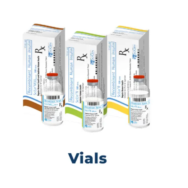 SciLin N (Isophane/NPH human insulin): Intermediate/slow-acting insulin, injectable suspension, helps maintain stable blood sugar between meals or overnight.