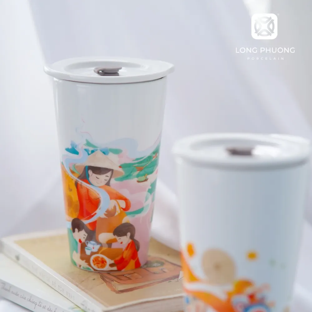 Sum Vay Porcelain Mug is a porcelain mug with a lid, improved design suitable for many customer segments, especially young customers, office workers, students... With a capacity of up to 700ml, the beautiful Sum Vay porcelain mug allows users to comfortably store and prepare their favorite drinks such as tea, coffee, juice, nut milk... Not only is it a convenient and safe drinkware product, the high-class Sum Vay porcelain mug also reflects the user's civilized green lifestyle.