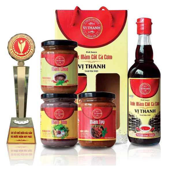 Vi Thanh Fish Sauce, a 3-star Ocop certified brand. Vi Thanh fish sauce and other fish sauces are 100% naturally fermented in Bời Lời wooden barrels using a traditional pressing method. Vi Thanh fish sauce is a clean, naturally delicious, pure & safe traditional fish sauce! It has a clean taste and a mild aroma.