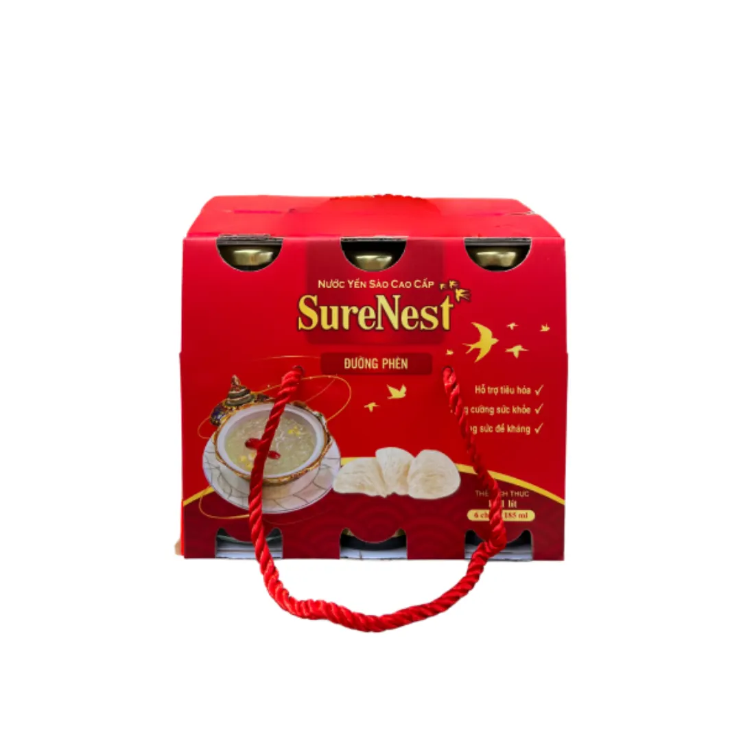The Premium Rock Sugar Bird's Nest Drink product line – SureNest with a natural bird's nest content of 30%, supplied in 6 bottles, is a top choice for those seeking a natural and effective way to improve their health. This product combines the rich nutrition of bird's nest and rock sugar, providing abundant energy for the body and boosting the immune system.