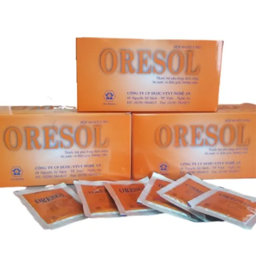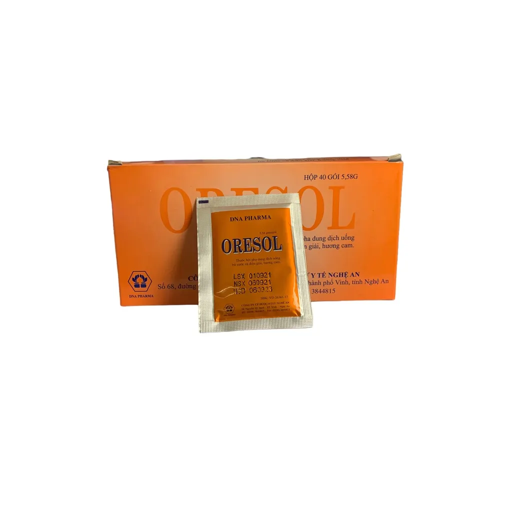 Oresol (DNA) 5.58g is a product manufactured by Nghe An VTYT Pharmaceutical Joint Stock Company. It is used to treat and prevent dehydration and electrolyte loss due to diarrhea. Oresol (DNA) 5.58g helps to quickly replenish water and electrolytes in the body.