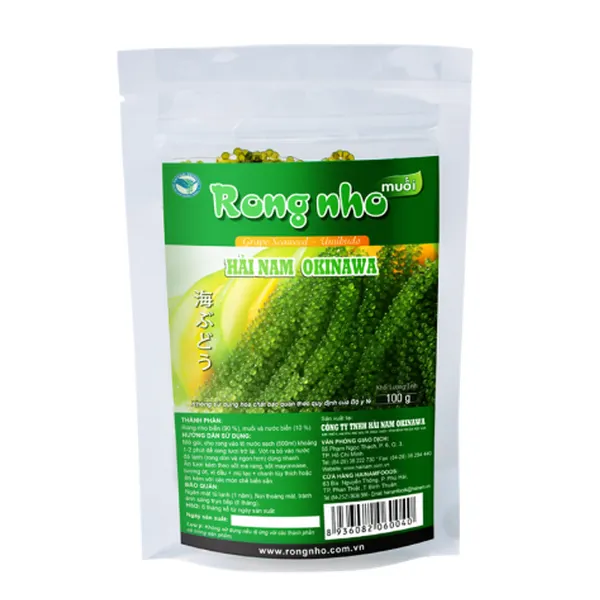 Hải Nam Okinawa Sea Grapes with Salt 100g is a ready-to-eat product made from fresh sea grapes, produced by Hải Nam Okinawa Co., Ltd. - a joint venture between Vietnam and Japan. The product is processed using Japanese technology, offering a delicious and convenient taste for consumers.