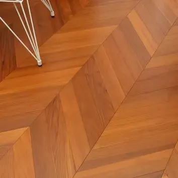 Chevron engineered oak flooring is the most popular choice among engineered flooring types. In its natural state, it has a light cream or yellow color with unique wood grain. Oak wood has never gone out of style and is suitable for any style and size of room. Oak wood is a relatively hard, durable flooring type and can last for decades if properly cared for.