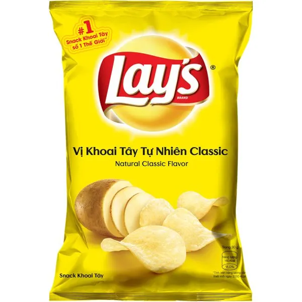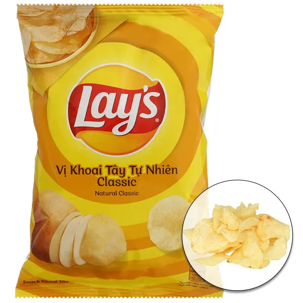 Lay's Classic 30g potato snack has a delicious aroma and thin, crispy potatoes. Real potato flavor. The 29g Lay's natural potato snack pack is very crispy, with a quite fragrant and rich natural potato flavor in every piece of potato. Lay's potato snack is well-received by many young people and enjoyed for various activities.