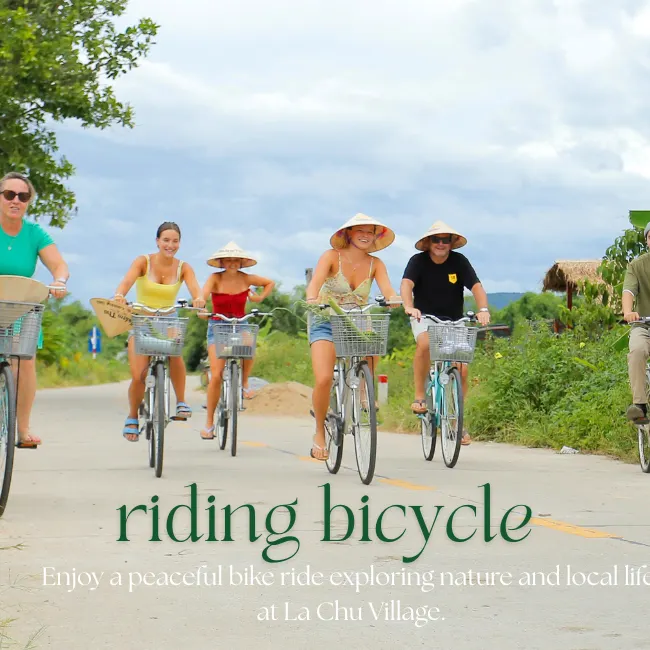 Cycling tour around the village: Cycle through the peaceful village roads. Visit historical and cultural sites such as the provincially recognized ancient pagoda, village communal house, bustling local market, and traditional temples.