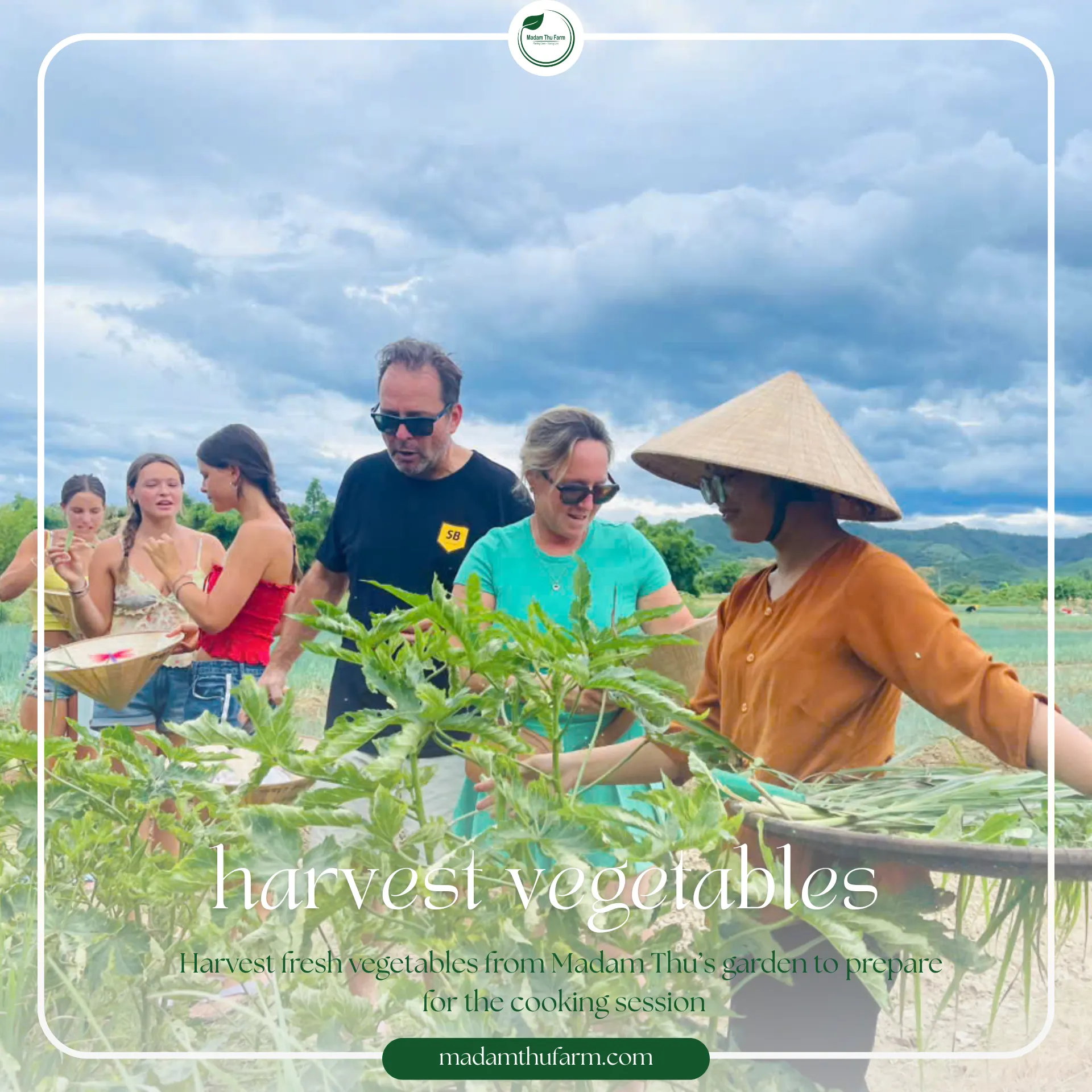 Visit Madam Thu Farm and agricultural activities: Visit Madam Thu Farm, the first organic farm in the village. Participate in authentic agricultural activities – harvesting seasonal fresh vegetables, watering the crops, and learning about daily life in the countryside.