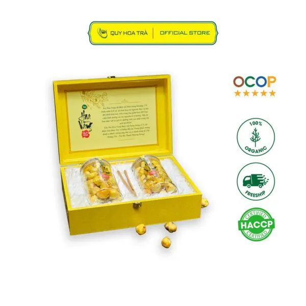 Quang Ninh is a region favored by Mother Nature more than other provinces and cities. Not only does it have abundant mineral resources, rich seafood, and beautiful poetic beaches, Quang Ninh is also famous for a precious type of tea known as the "Tea Queen". This tea not only possesses a refined and luxurious beauty but is also known as a panacea for preventing and treating certain diseases such as fibroids, blood sugar, and cardiovascular diseases. In the past, golden flower tea was only used by emperors and kings; now it has become more widespread and widely known. To understand why golden flower tea is so precious, let's explore the uses of High-Grade Quang Ninh Golden Flower Tea.