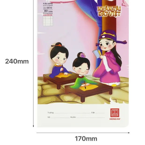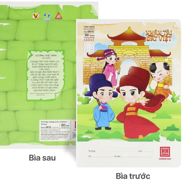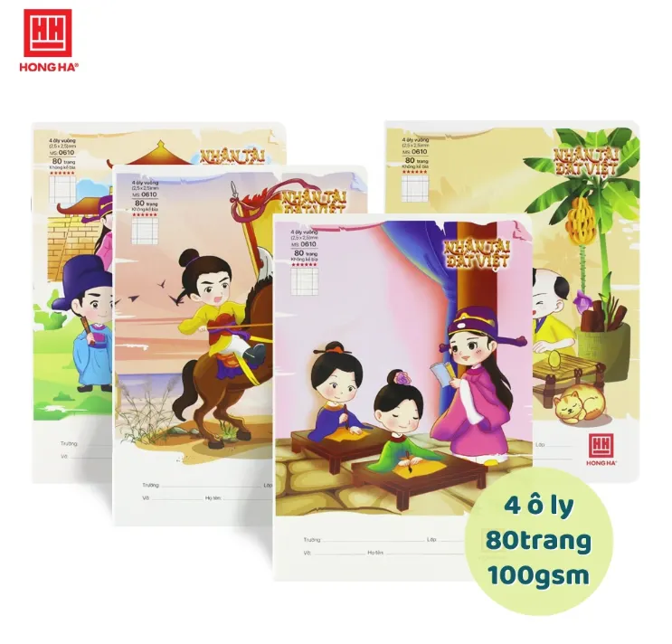The Hồng Hà School 'Human Talent of Vietnam' 4-Square Lined 80-page Notebook - 0610 provides students with useful information about Vietnam's famous 'Trang Nguyen' (Valedictorians/Top Scholars).