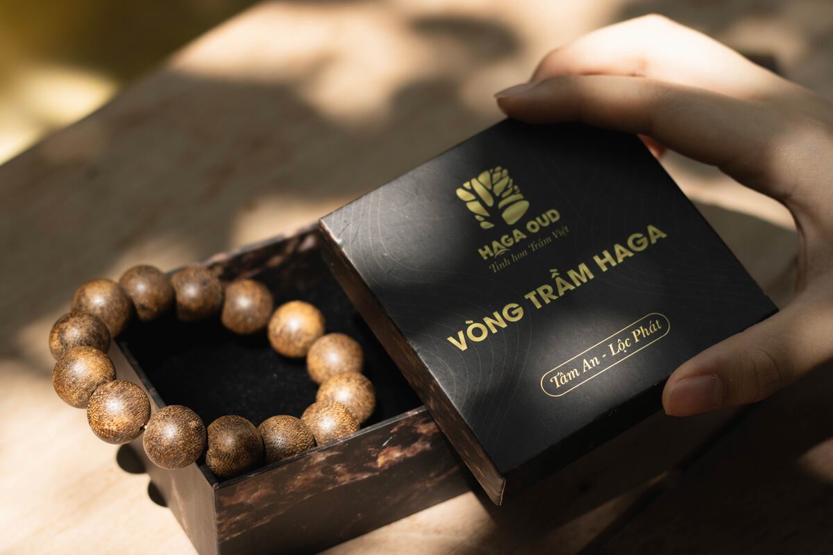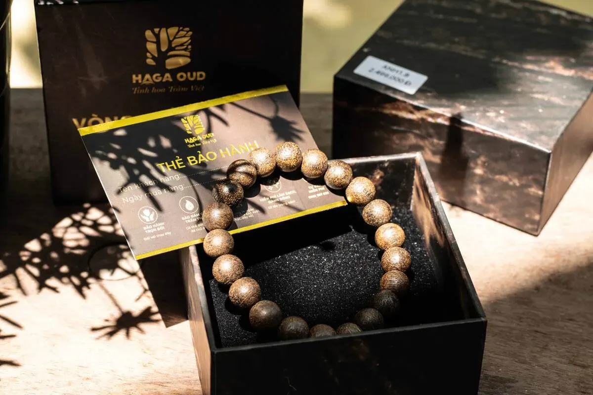 The high-grade dark brown HAGA agarwood bracelet is a premium piece of jewelry. Its agarwood fragrance offers a pleasant, relaxing sensation, helping the wearer relieve stress, stay alert, and enjoy a good night's sleep. In terms of feng shui, the agarwood bracelet is believed to ward off evil spirits and bad luck, while bringing good fortune, wealth, and peace to the wearer.