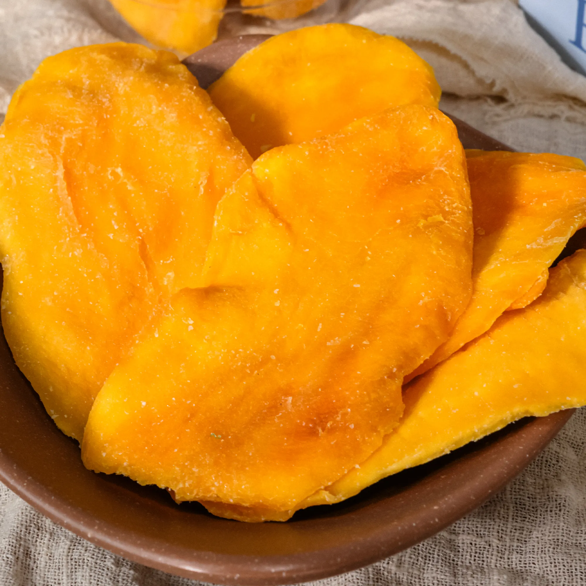 Les mangues séchées moelleuses sont généralement de couleur jaune vif, avec un goût légèrement aigre-doux et une texture moelleuse agréable à manger, avec un arôme caractéristique de mangue mûre. Cet aliment est non seulement attrayant pour le palais, mais aussi une source de précieux nutriments. Les mangues séchées moelleuses sont conservées de manière 100% naturelle, sans colorants ni produits chimiques. La couleur et le goût des mangues séchées moelleuses sont entièrement naturels, et le processus de production respecte les normes de sécurité et d'hygiène alimentaire.
