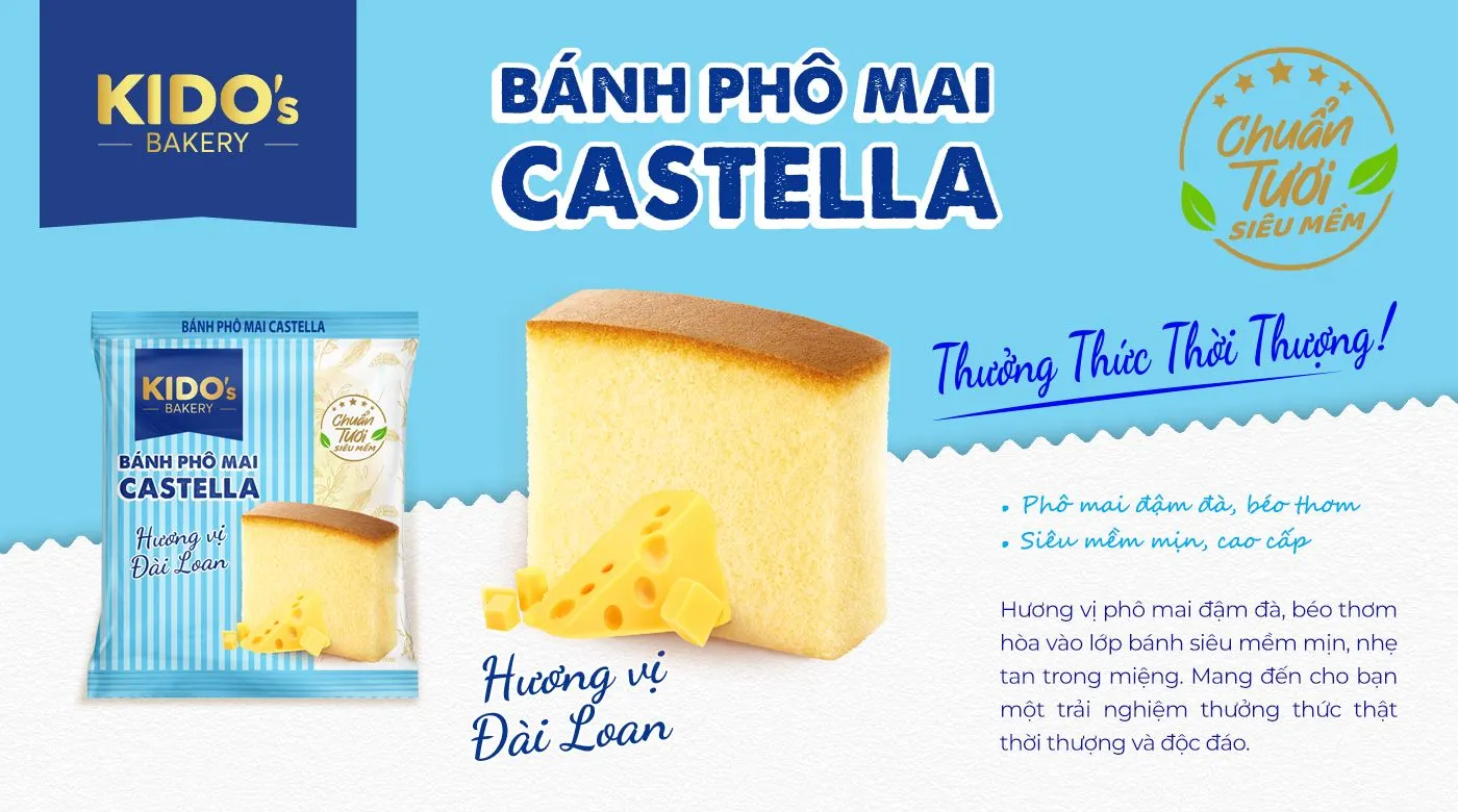 - La Torta al Formaggio Castella Kido ha un sapore di formaggio ricco e aromatico che si fonde con uno strato di torta super morbido e vellutato, che si scioglie in bocca.