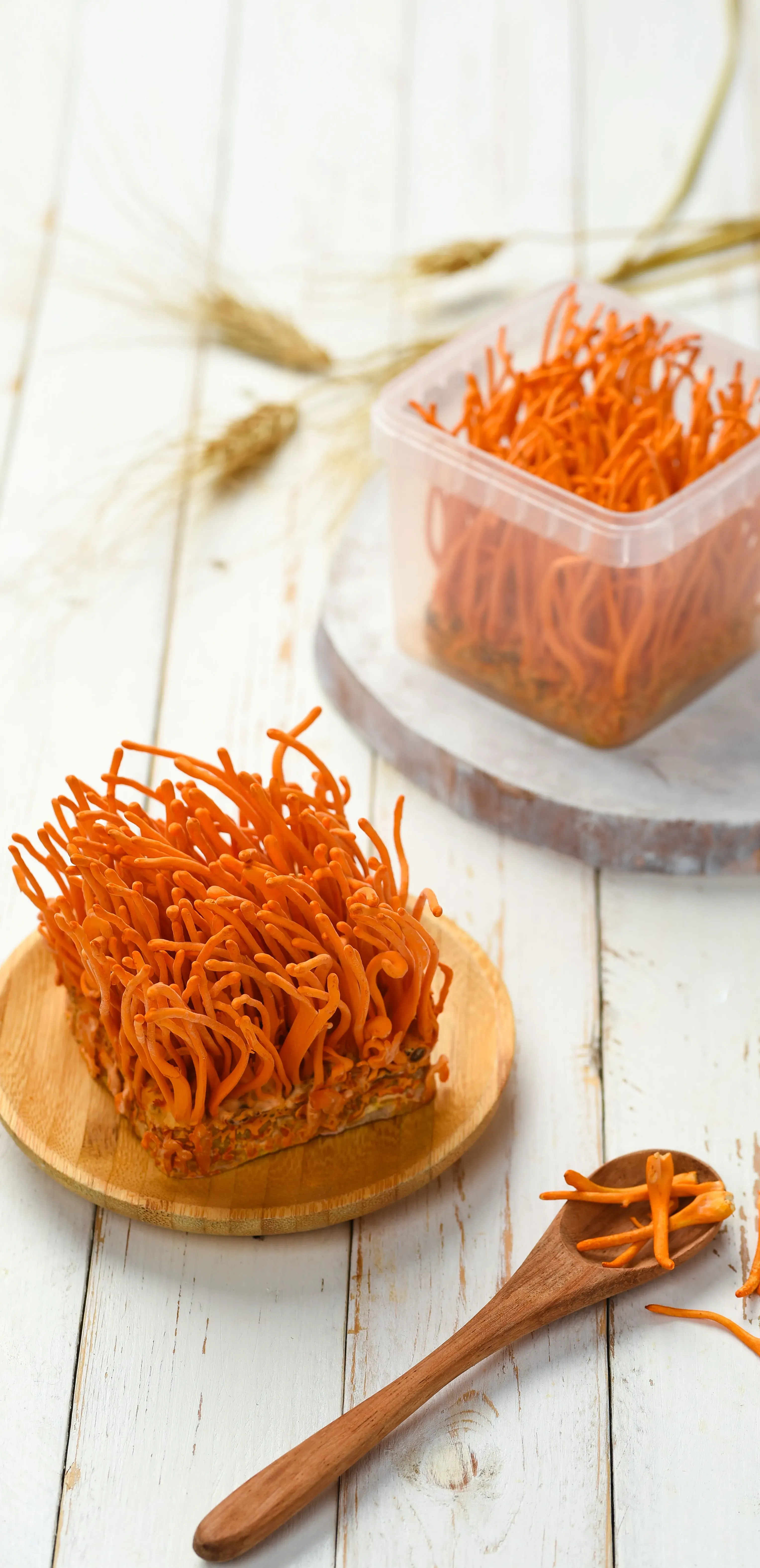 Caratteristiche: micelio corto, piccolo, non uniforme, coltivato secondo una ricetta tradizionale con aggiunta di spirulina.
