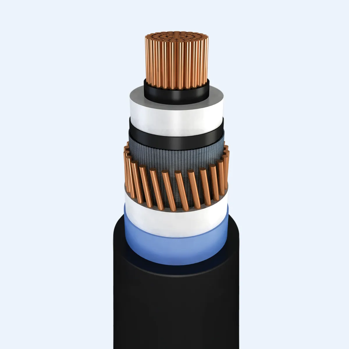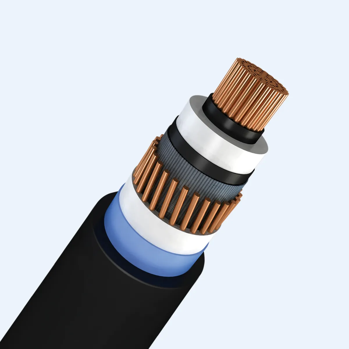 ชั้นกึ่งตัวนำ: ประกอบด้วยชั้นกึ่งตัวนำด้านใน (ระหว่างตัวนำและฉนวน) และชั้นกึ่งตัวนำด้านนอก (หุ้มด้านนอกของฉนวน) เพื่อให้แน่ใจว่าสนามไฟฟ้ากระจายอย่างสม่ำเสมอ