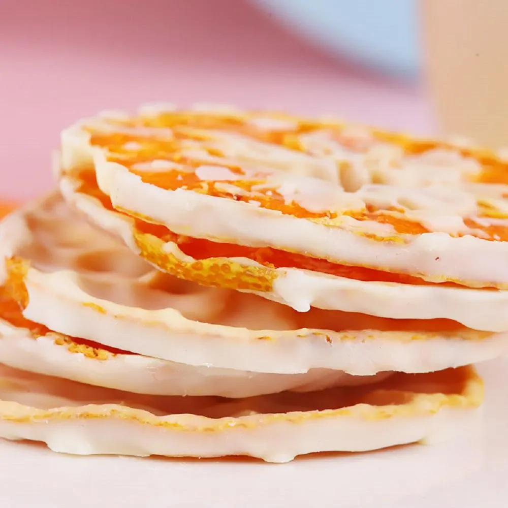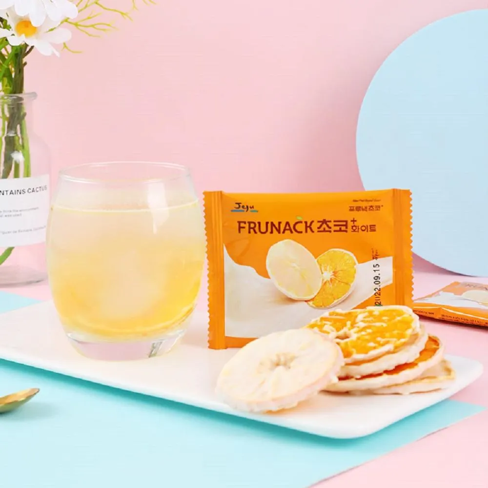 ขนมขบเคี้ยวผลไม้แห้งจากส้มแมนดารินเจจู 100%เคลือบด้วยช็อกโกแลตขาวด้านเดียว