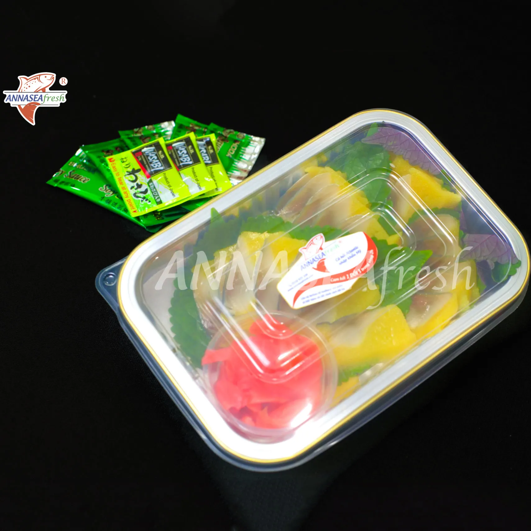 Gia vị ăn kèm: nước tương Nhật Bản, wasabi, gừng hồng