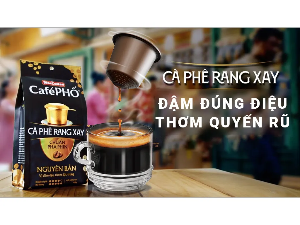 Được tuyển chọn từ những hạt cà phê chất lượng, phối trộn cùng bơ và các hương liệu mang đến mùi cà phê cực quyến rũ. Cà phê rang xay MacCoffee Café Phố 450g chính hãng cà phê phin MacCoffee vị đằm dịu, thơm đặc trưng cho bạn ly cà phê pha phin chuẩn vị nguyên bản ngay tại nhà