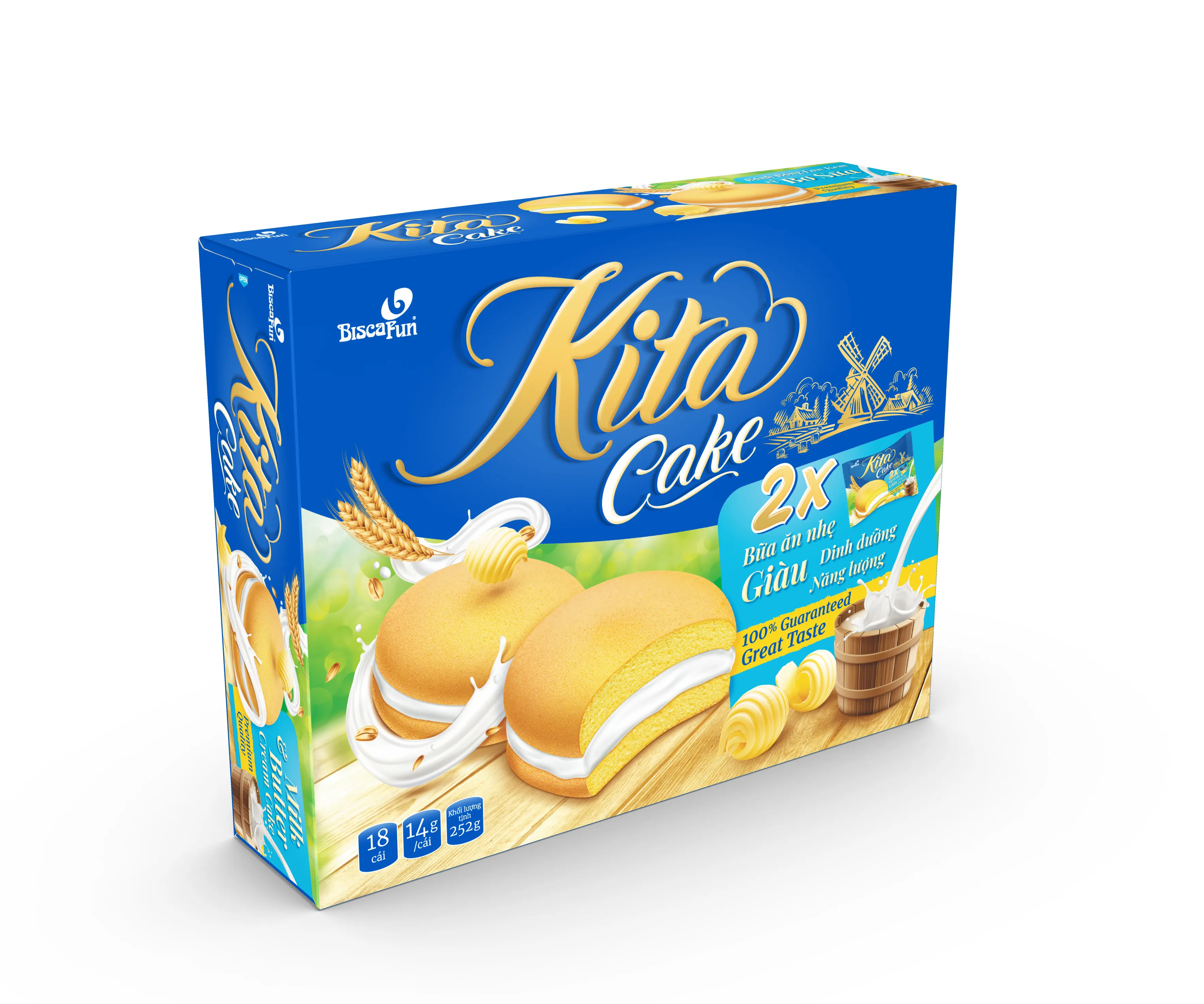 Biscafun - Bánh bông lan Kita Cake Bơ sữa hộp 252g