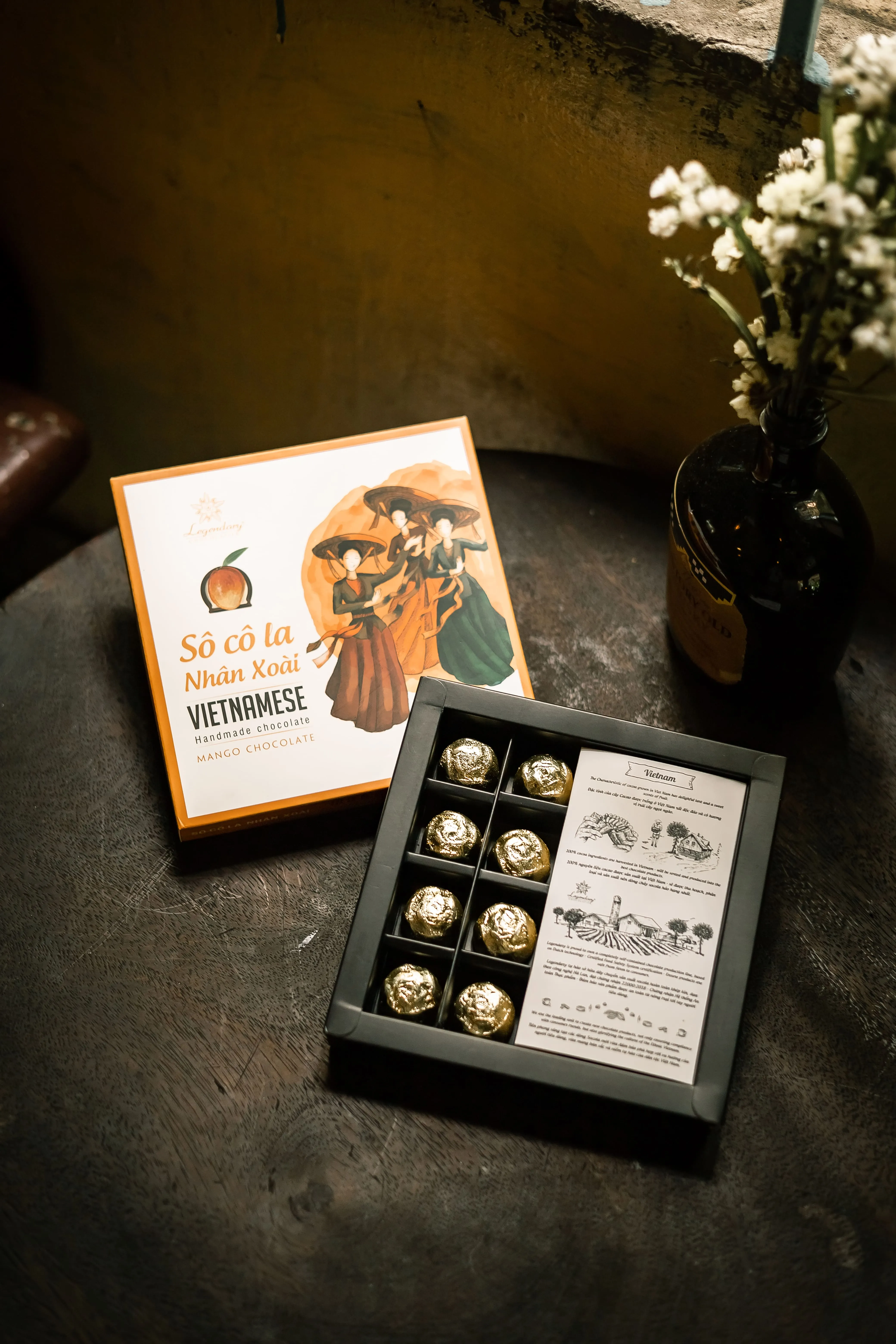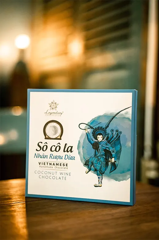 🥥 Rượu dừa – Với dừa từ Bến Tre và rượu nếp lên men truyền thống được ủ trong vỏ dừa. Sô cô la mang đến cả hương vị ngọt ngào và say đắm trong một miếng cắn.
