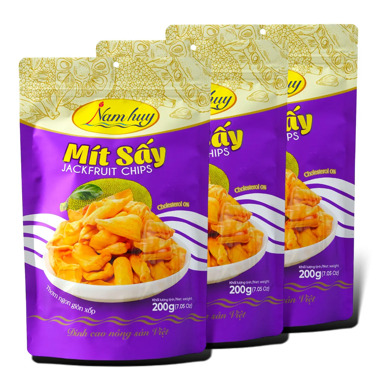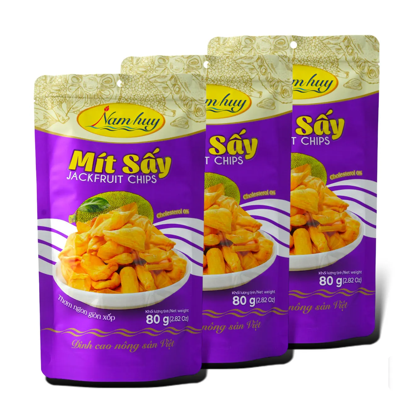 Mít sấy có vị ngọt thanh tự nhiên, không đường, thơm ngon giòn xốp, luôn giữ màu vàng tươi của mít, múi không quá to không cứng gần như nguyên múi, sản phẩm hoàn toàn không sử dụng hóa chất và phụ gia thực phẩm.