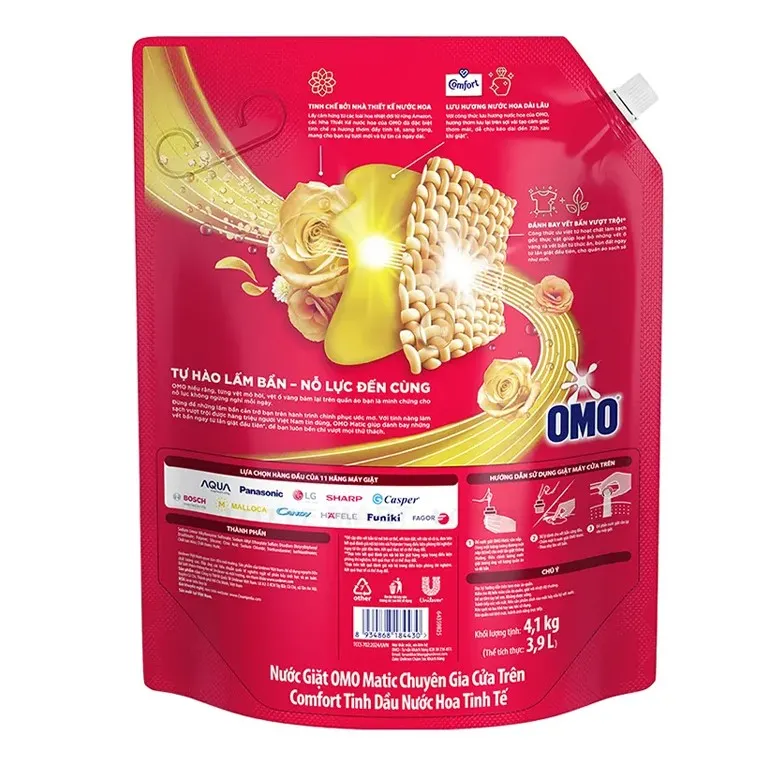 Ưu điểm của nước giặt OMO Matic Comfort cửa trên tinh dầu nước hoa tinh tế túi 4.1kg