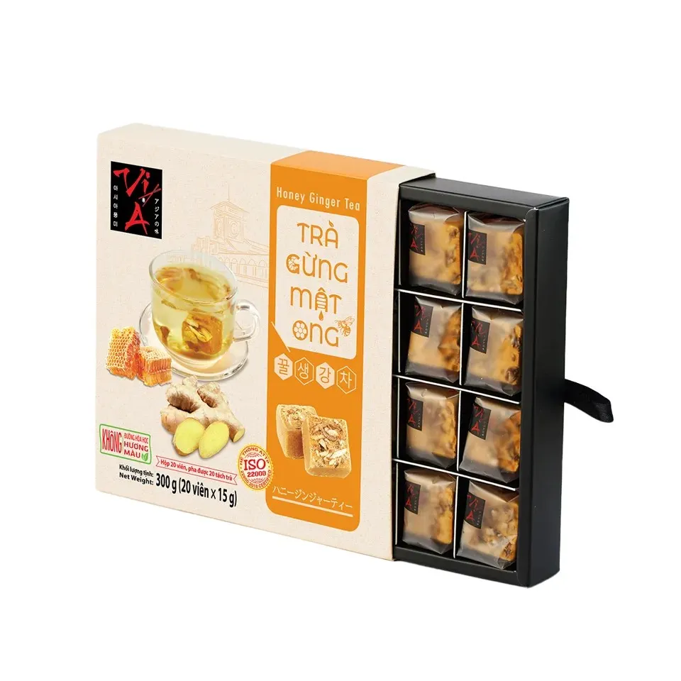 Trà Gừng Mật Ong Viên Vị Á là sản phẩm được thiết kế với hộp kéo sang trọng, phù hợp để làm quà tặng cho bạn bè, người thân, đối tác trong các dịp đặc biệt để thể hiện sự quan tâm đến sức khỏe của người nhận món quà ý nghĩa này