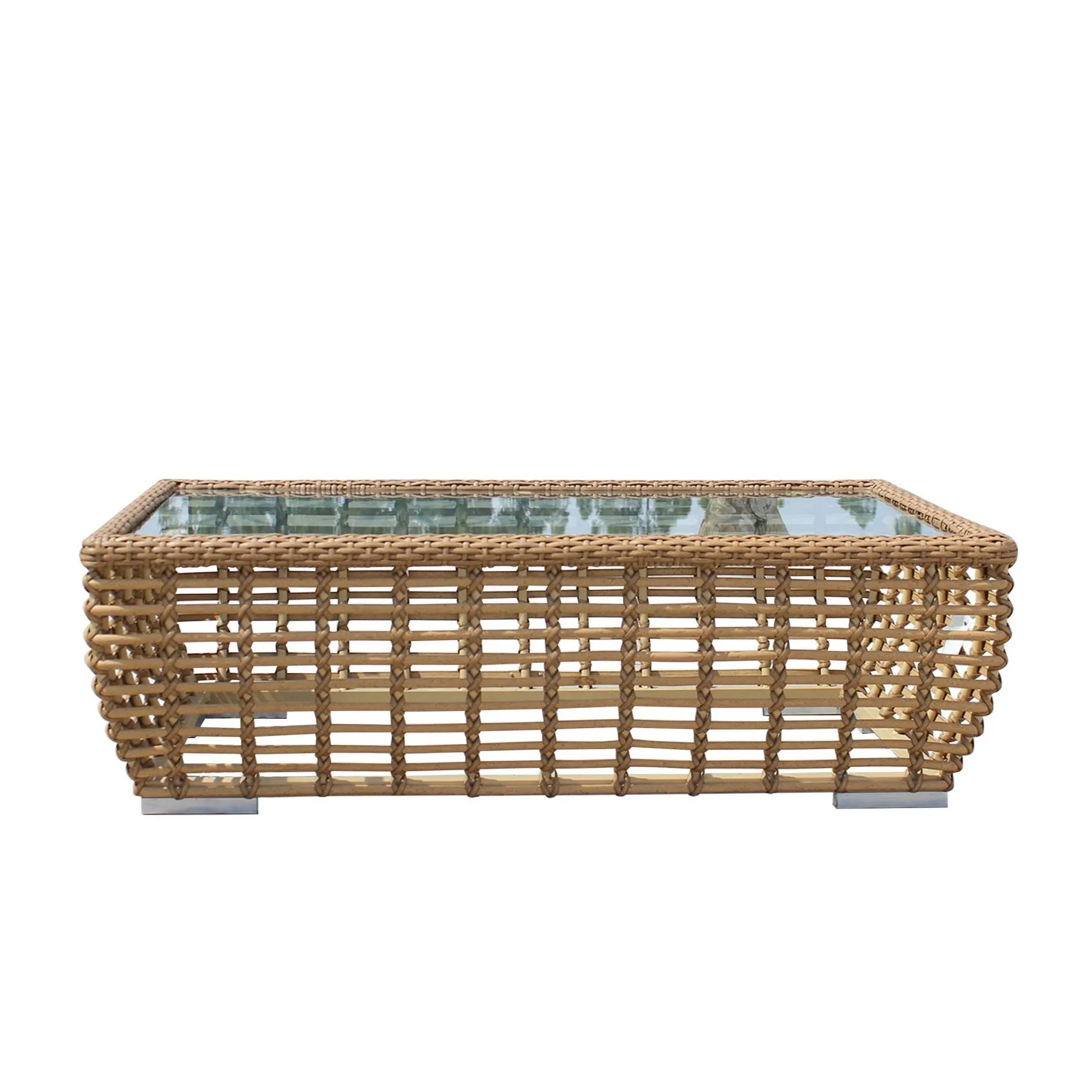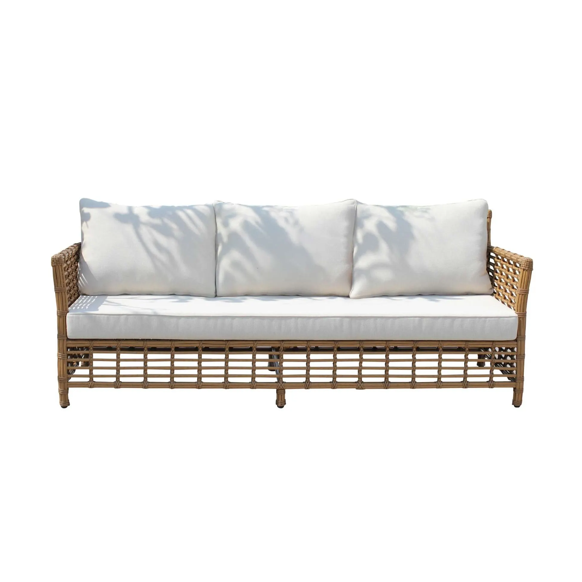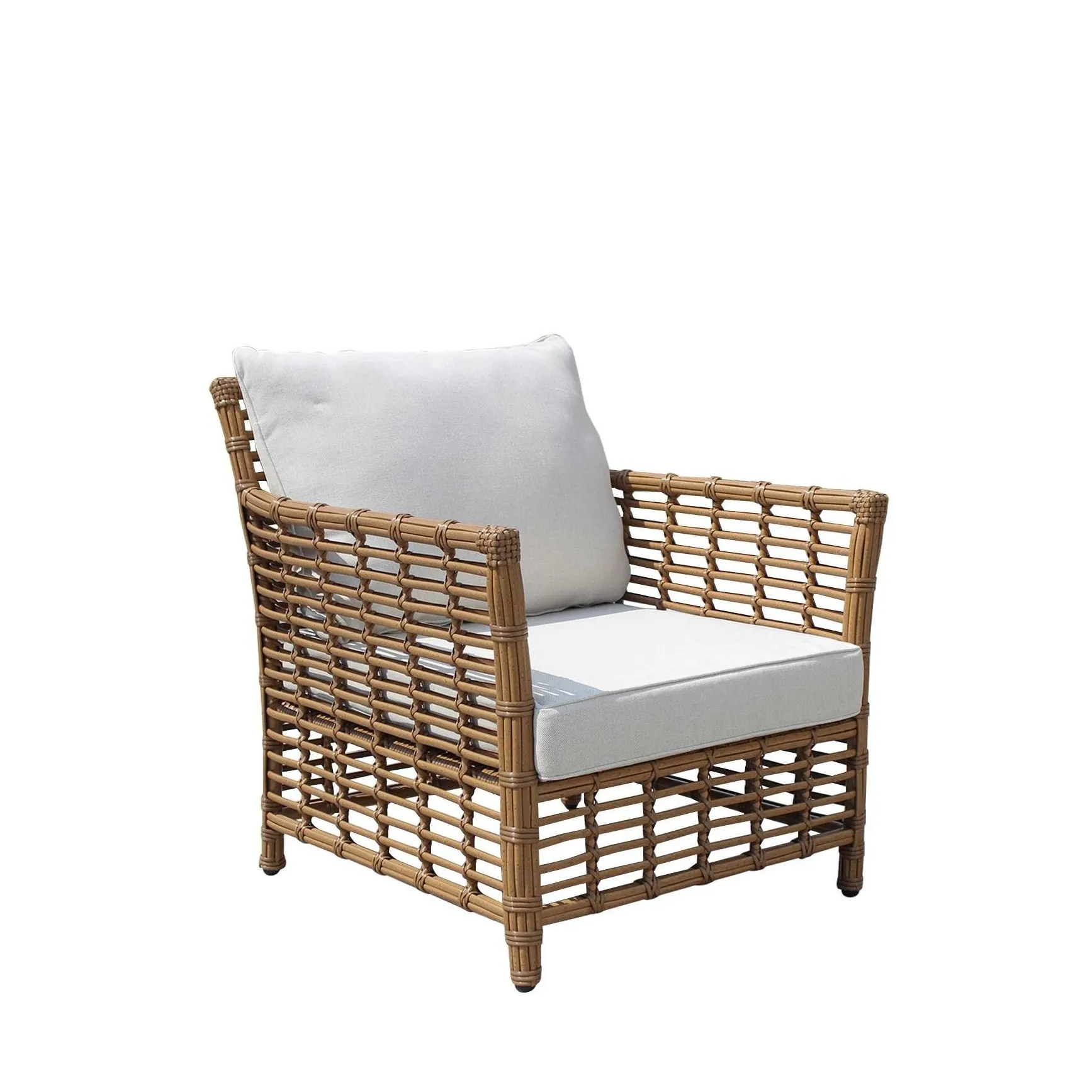 ALPINE 户外沙发套装 (RASF-239) 采用坚固的铝制框架、手工编织的 Poly Bamboo HDPE 塑料纤维和 12 厘米厚、250 克防水面料包裹的坐垫。该产品将自然美学与现代耐用性相结合,适用于各种户外空间。