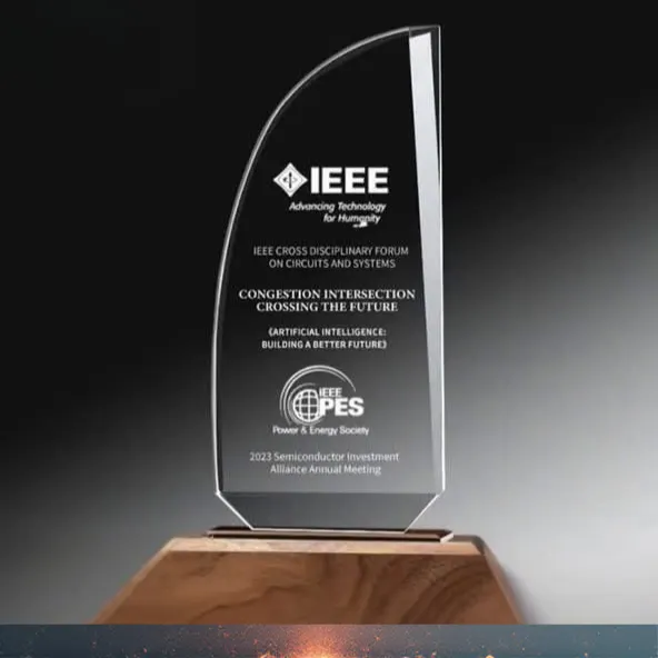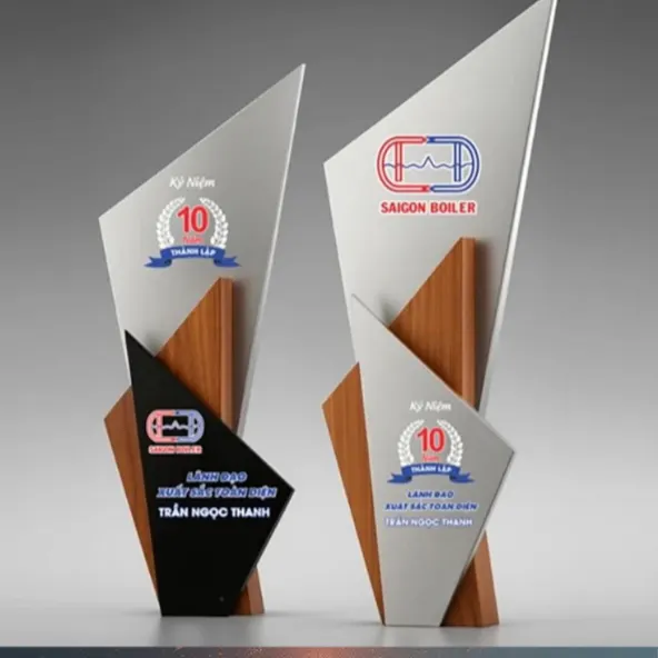 木制或亚克力奖杯:现代、精致,可结合UV打印、CNC雕刻。