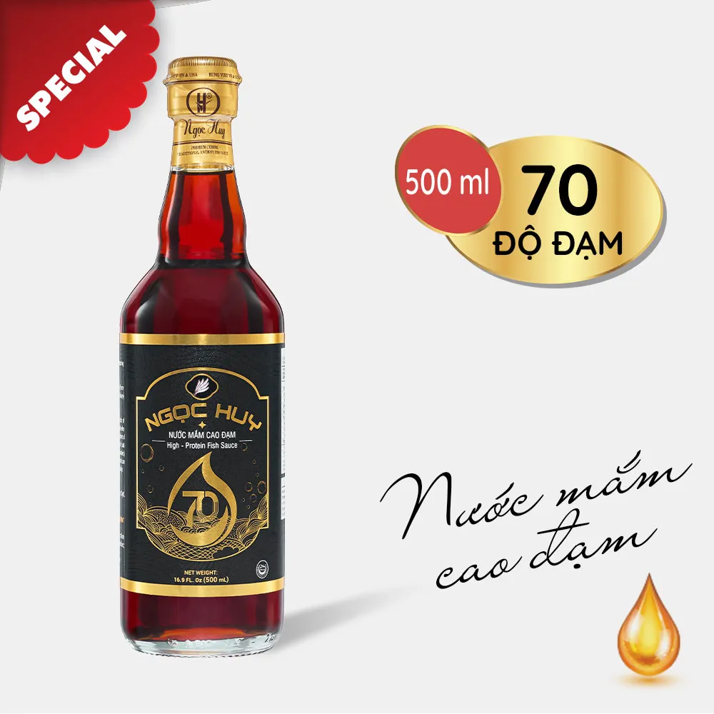 Ngọc Huy 70度蛋白质鱼露是最高级的系列产品,也是 Ngọc Huy 鱼露品牌在过去15年里享誉盛名的精髓所在。