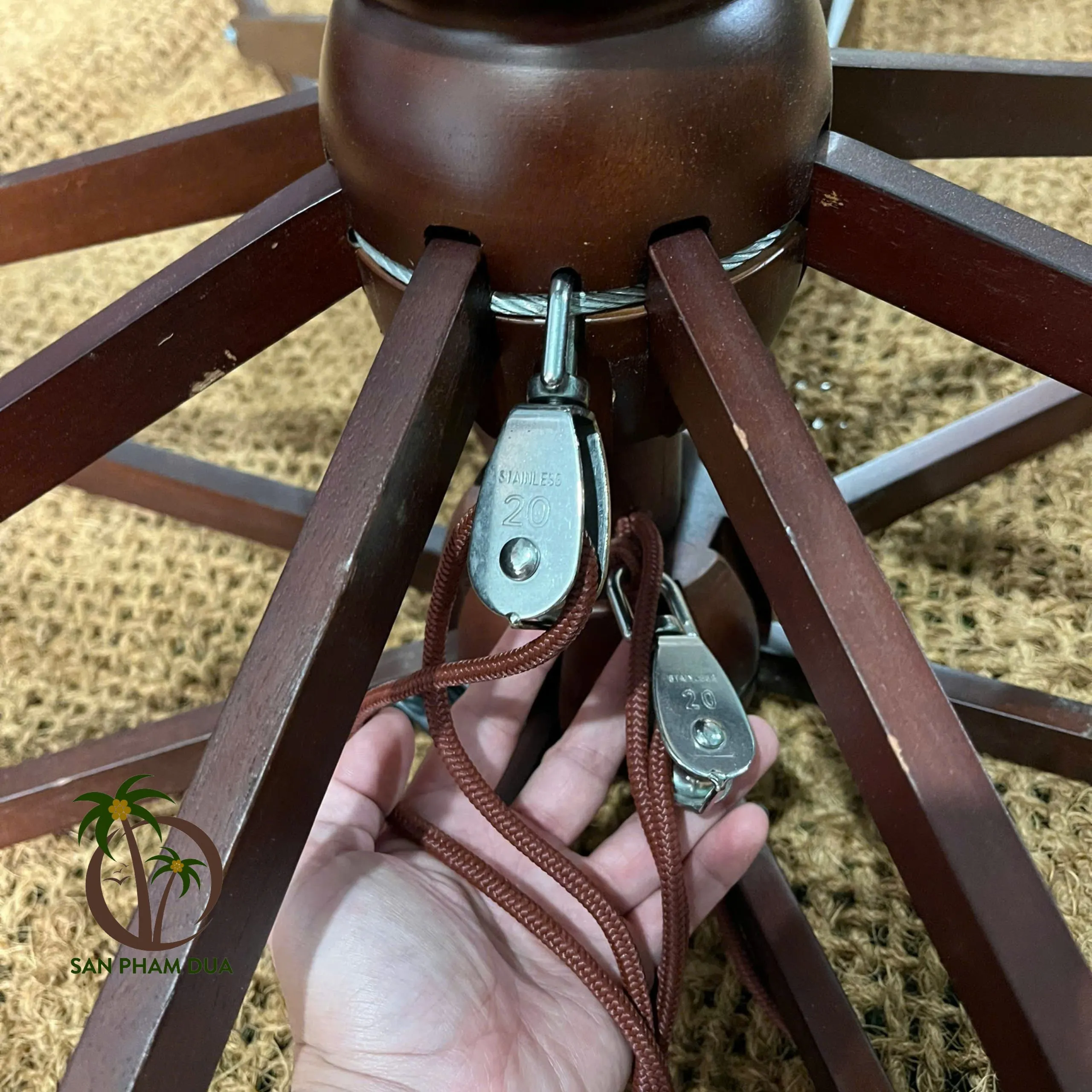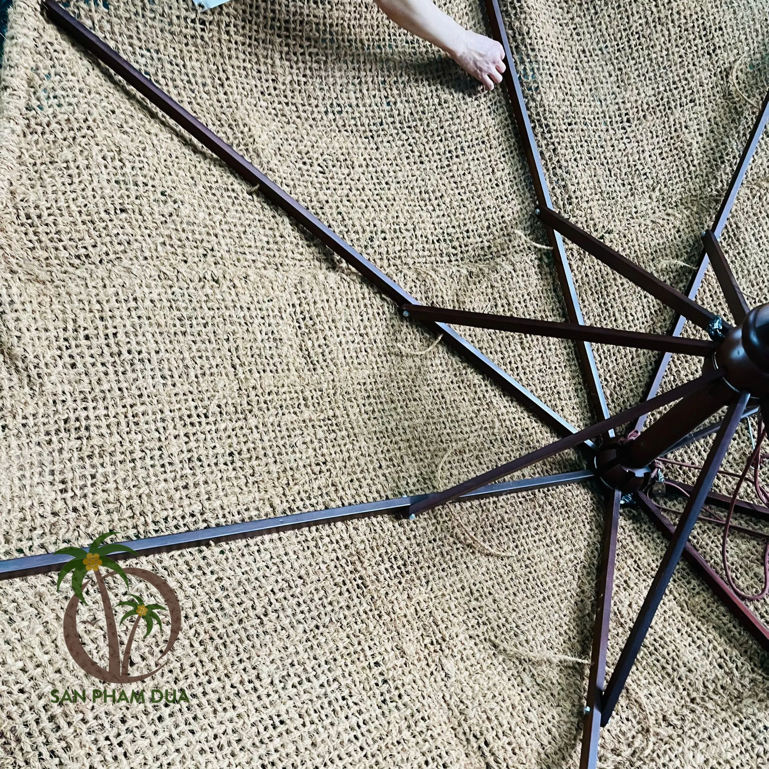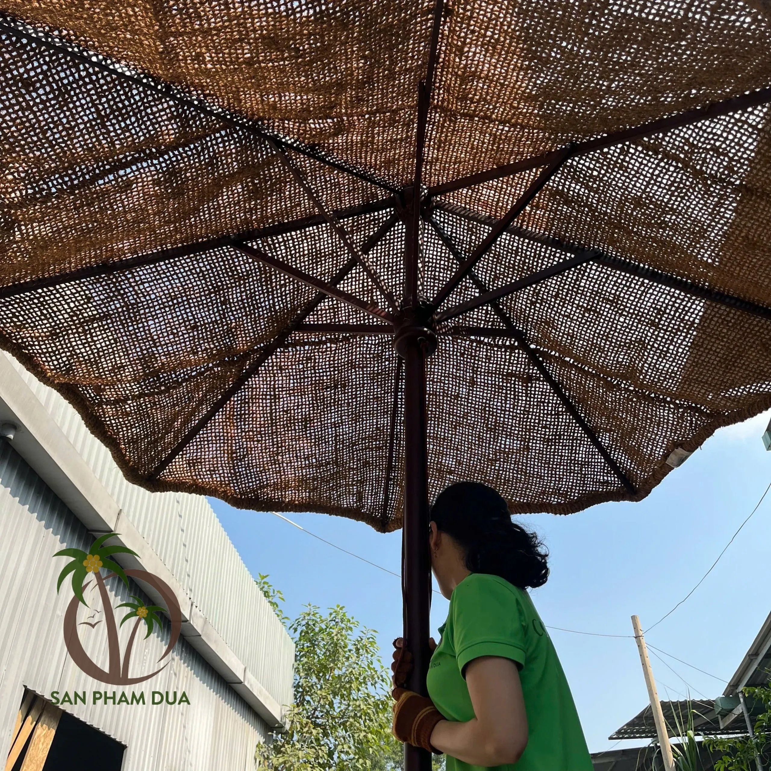 该产品采用手工制作,具有高质量和天然质朴的美感。伞盖采用100%天然椰子纤维编织而成,并设有通风孔,以创造良好的空气循环。