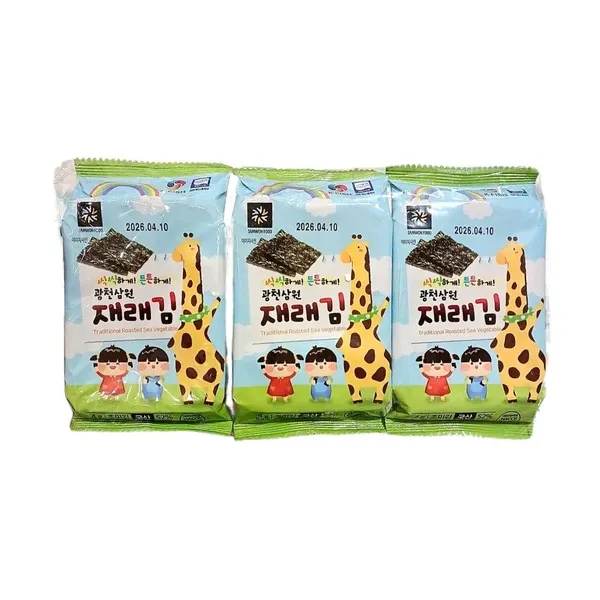 Samwon Kid 紫菜海苔是专为儿童设计的高级即食海苔,在韩国按照严格的质量标准生产。产品采用纯净海苔,浸渍橄榄油,并采用无油煎炸技术加工,有助于保留天然风味,香脆可口,同时确保对宝宝健康。