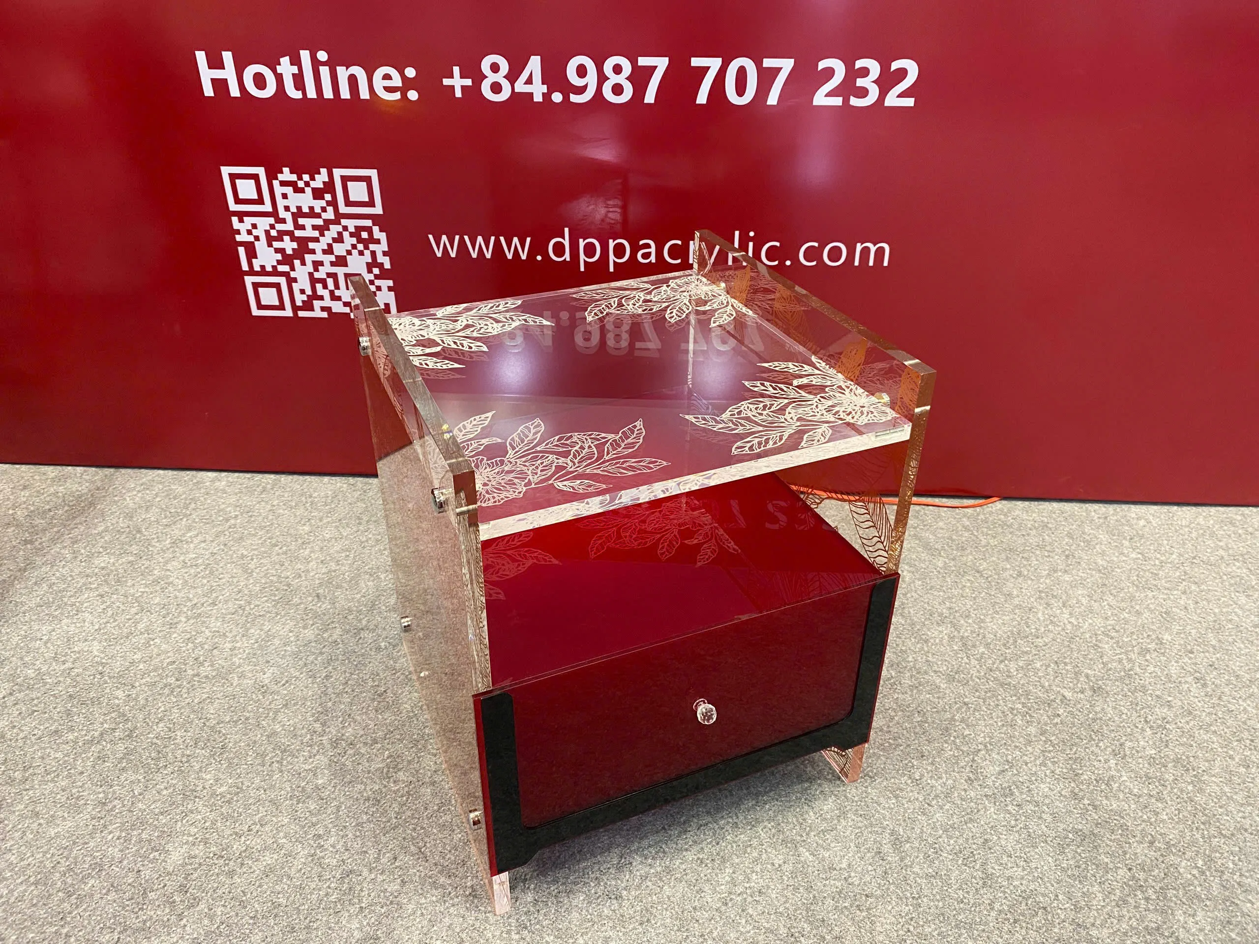 15mm透明亚克力、5mm红色亚克力、5mm黑色亚克力组合,营造出高贵典雅之感。