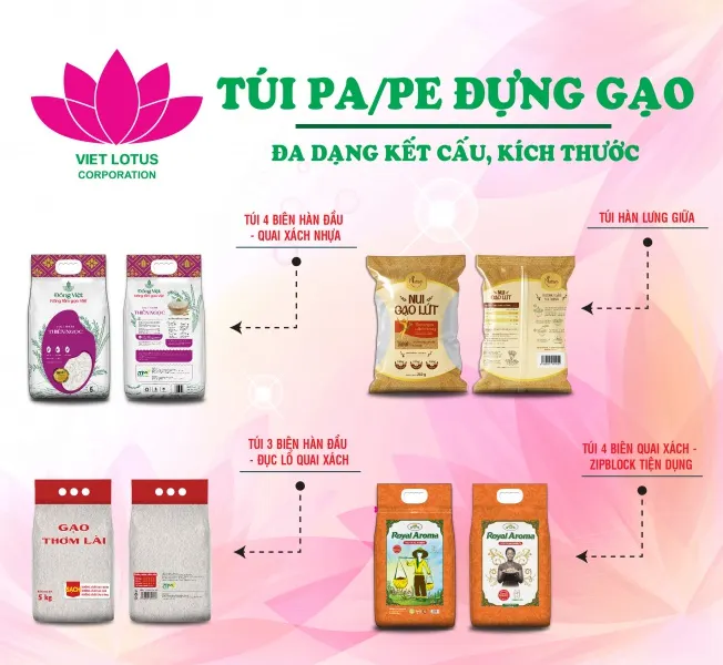 Sen Việt是国内外领先的大米包装企业。PA/PE复合米袋是我们的主打产品和优势产品。使用符合标准的包装进行储存具有巨大的益处: