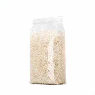 目前市场上用于盛装大米的包装通常使用透明的PA塑料袋和PE塑料袋,这种袋子由纯净的石油基塑料颗粒制成,具有高柔韧性、光滑和透明的特点。