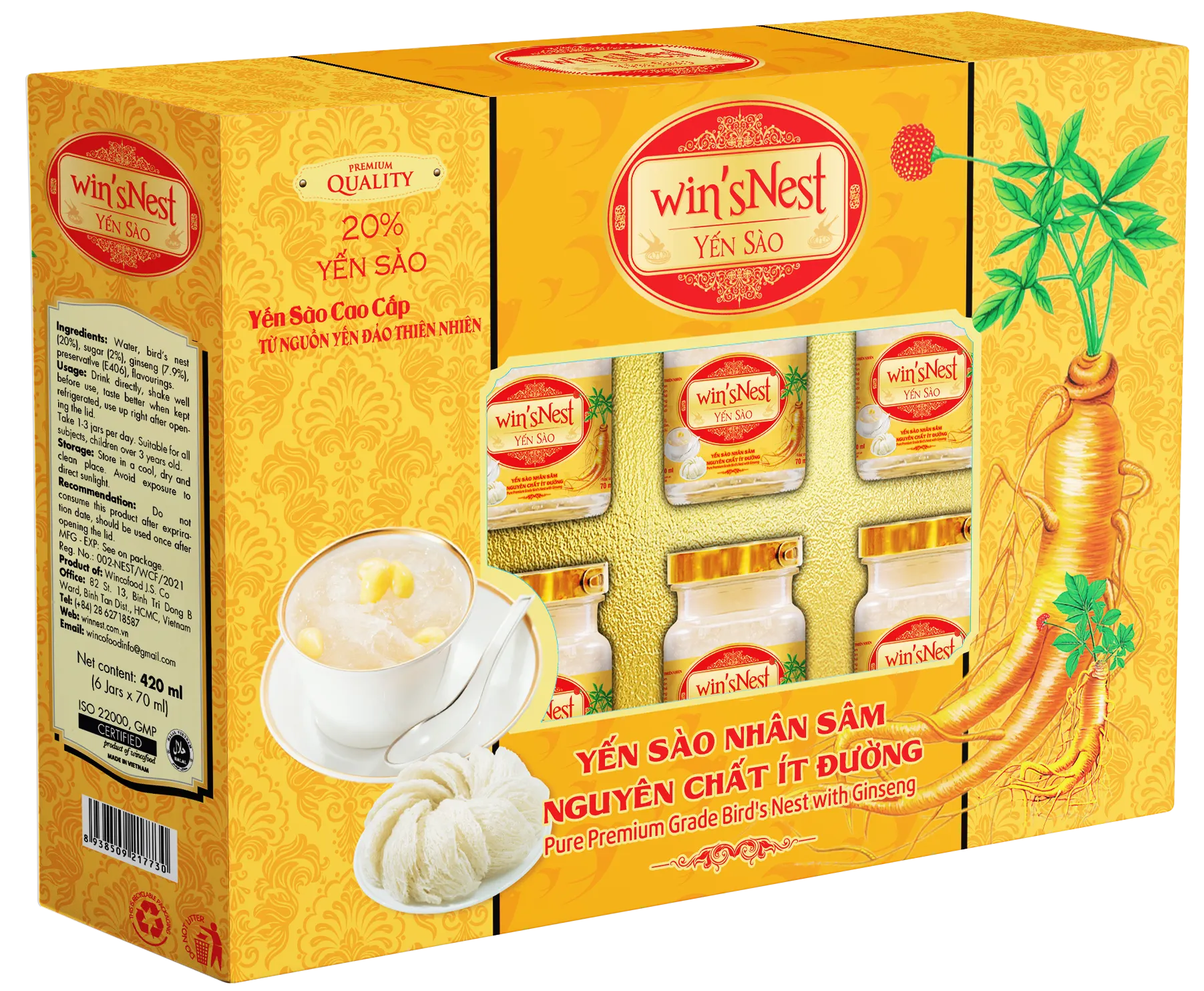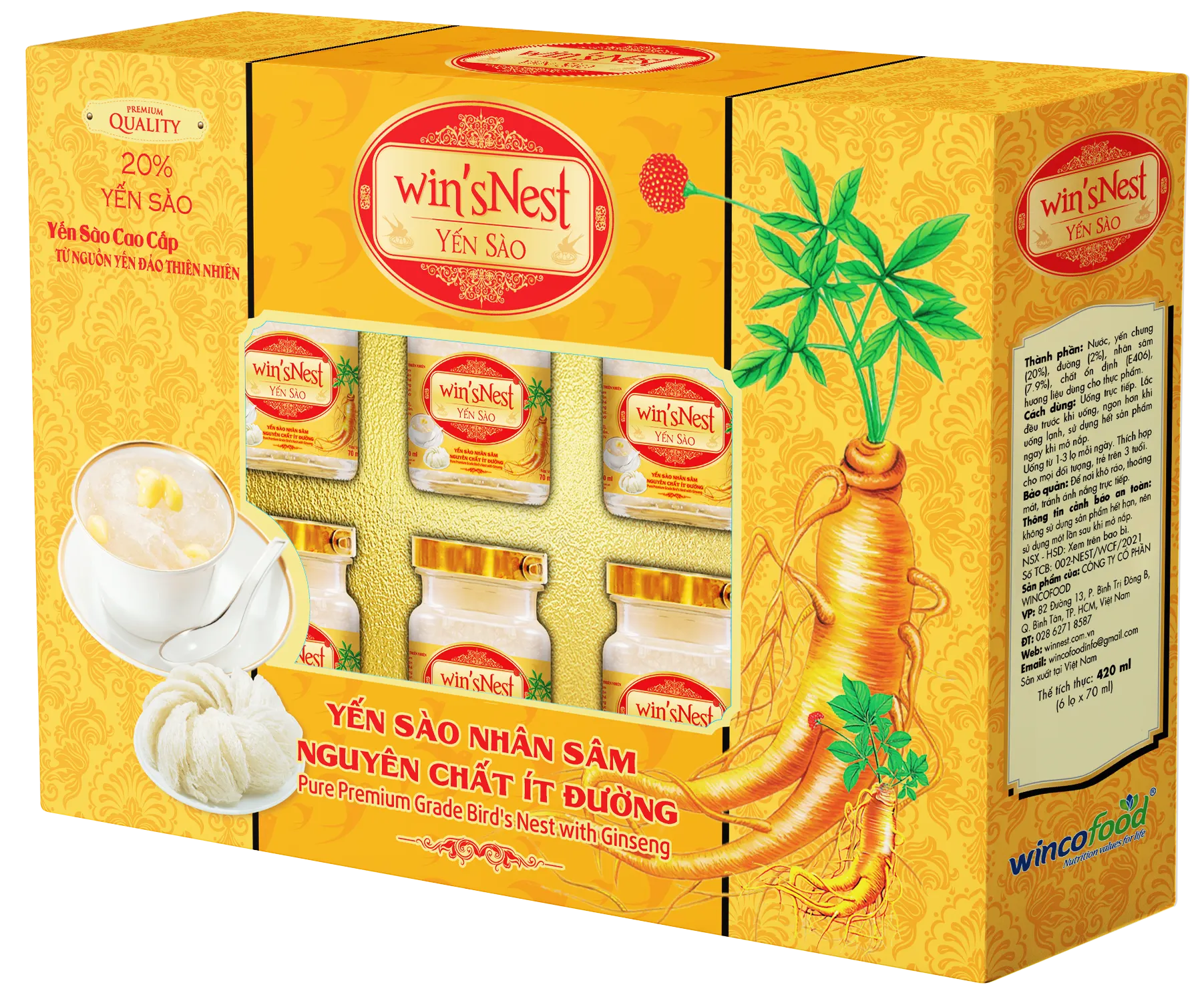 Win'sNest 高级即食人参燕窝(少糖)采用天然岛屿燕窝为原料,是wincofood公司的产品。采用传统方法生产,生产线符合食品安全标准。